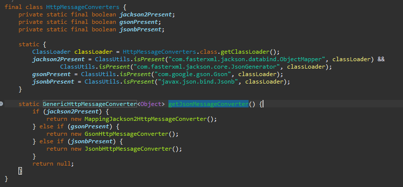 패키지 경로명과 boolean 변수명을 보면 Json을 convert할 라이브러리가 없기 때문으로 추측된다.